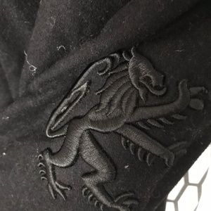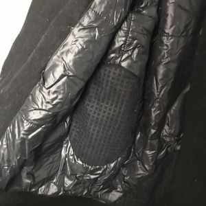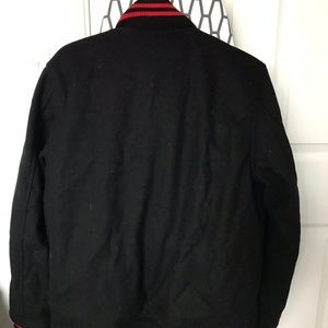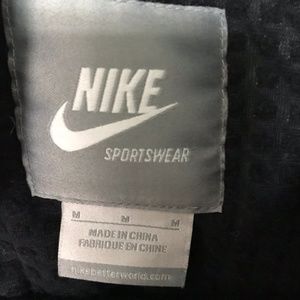 Nike Jacket. Nice wool and warm coat with breathable lining. Red streamlined and with a leather embossed. Size medium, not true to size as it fits between medium and large. No rips or stains. Cover photo shows white particles, however its clean and worn once. No rips no stains like new. Non smoking