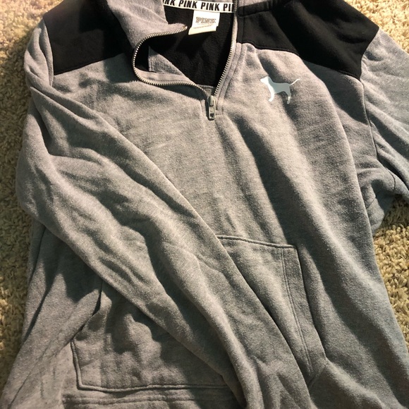 pink super comfy half zip. worn many times but still have plenty of life left.