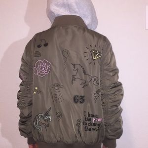 It is a very comfy jacket. It has unicorns and many other cute designs! it comes with a detachable hood, in the color grey.
