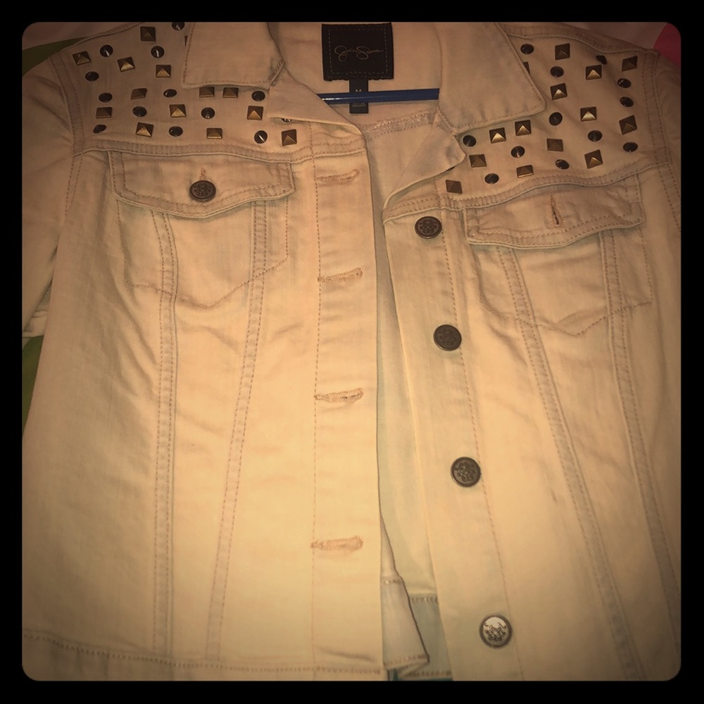 studded shoulder light wash jean jacket (Jessica Simpson); never worn