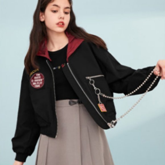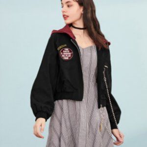 2020 spring new outerwear women's spring and autumn hooded embroidered label jacket short coat fashion Korean loose
