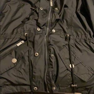 black wind breaker material with many pockets and buttons