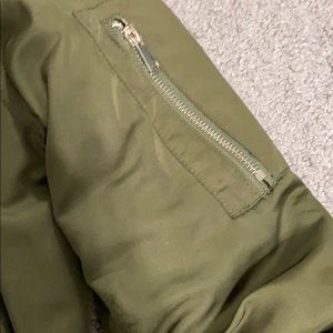navy green jacket, many zippers, worn a few times, great for a cute winter outfit :) i may lower price if wanted