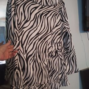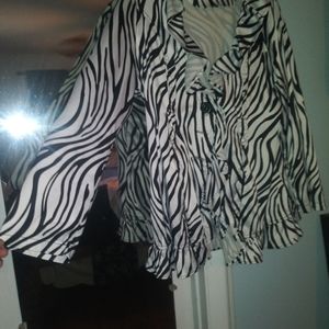very fun jacket zebra striped big black buttons