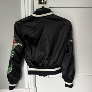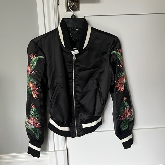 cute bomber jacket with flowers on sleeve. brand new, tag still on