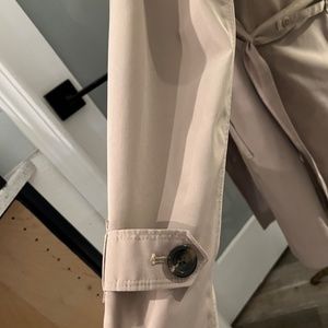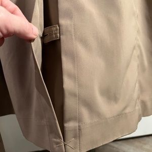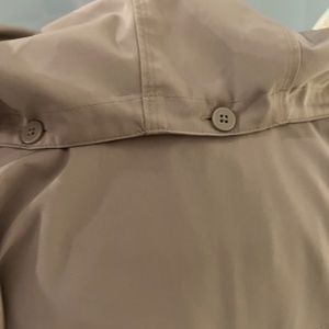 Really nice pleated rain trench. Classic brown tortoise buttons with detachable hood.
