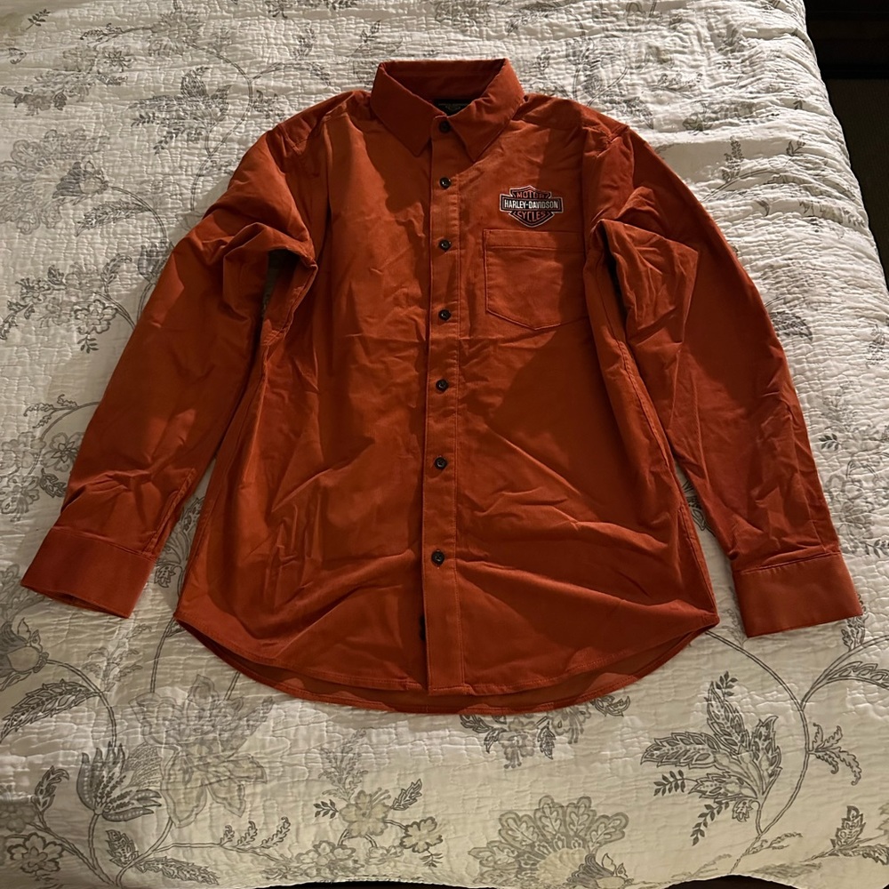 orange corduroy harley davidson jacket. with elbow pads. brand new, send offers.