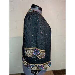 jacket beaded sequins short sleeve 100% silk black purple gold blue glam