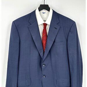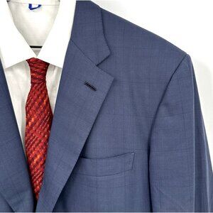 jacket blazer sport coat super 200s 100% wool windowpane blue 46L