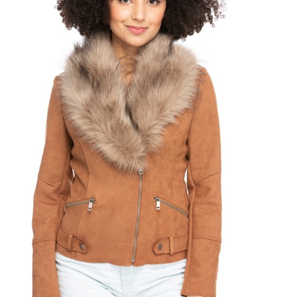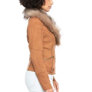 Womens faux fur-lined vegan suede jacket (good quality) (detachable fur)