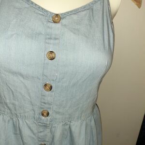 japna Blue cotton denim sundress summer mini dress button down front small xs s