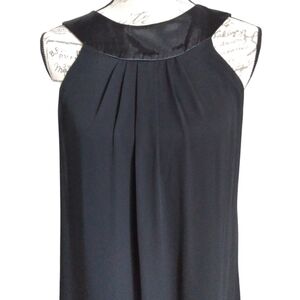 Elegant and timeless, this J.B.S Ltd black sleeveless dress is designed with a luxurious satin halter collar and a keyhole button closure at the back for a polished finish. The softly pleated front adds graceful movement, while the chiffon shell and stretchy polyester lining create a comfortable, flattering drape. Perfect for cocktail parties, evening events, or semi-formal occasions.