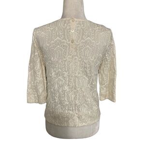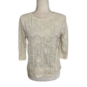 j crew womens solid ivory Crew Neck embroidered long sleeve top small