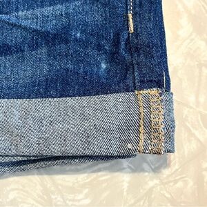 jean shorts high rise button fly 5 pocket rolled hem dark wash dollhouse tag