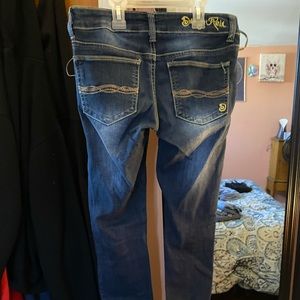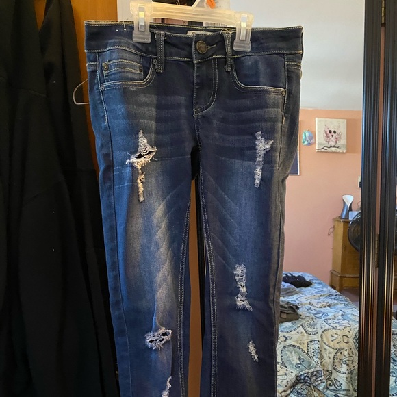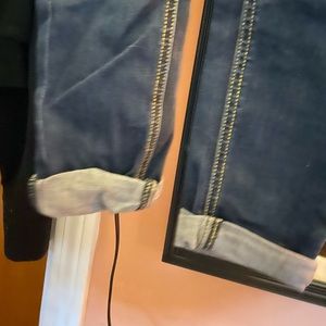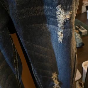 Slight ripped skinny jeans, dark blue with cuffed ankles worn only a few times
