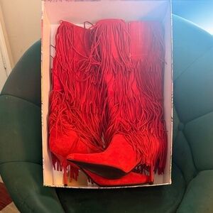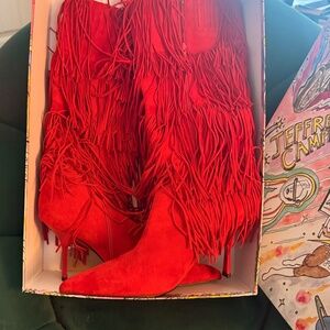 Jeffrey Campbell red fringe boots, Size 10, Worn only 1 time