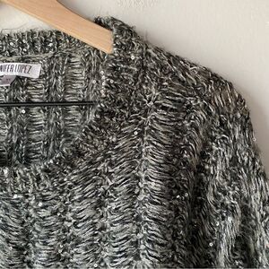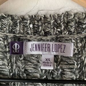 jennifer lopez gray sequin fuzzy flowy sweater size xs