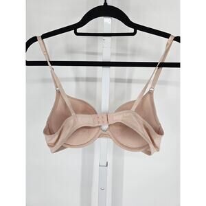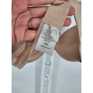 This is a lightly padded T-shirt bra from Jessica Simpson in a women's size 36C. The bra is a solid beige color and is in great condition. This bra offers great support and a smooth, seamless look under clothing. Perfect for everyday wear, providing comfort and confidence all day long.