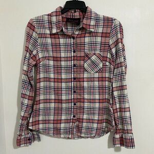 jet-set Cotton Checked Long Sleeve Button Down Womens Shirt Size M