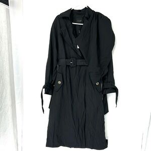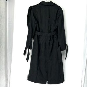 jlux label new with tags women’s black trench coat with removable drape for added elegance. Pit to pit measures 22 inches. Shoulder to hem measures 47 inches. Jacket is wrinkled. I did not want to steam it as it is brand new with tags.
