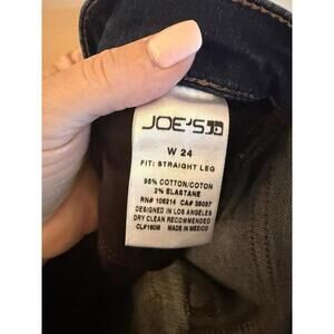 The product is a pair of Joe's Jeans for women in a dark wash with a straight leg fit. Made by the brand Joe's Jeans, these jeans are designed for a comfortable and flattering fit for women. The dark wash adds a stylish and versatile touch to the classic straight leg silhouette, making them a wardrobe staple for any fashion-conscious individual.