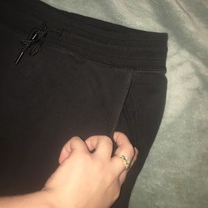worn twice. comfortable. include pockets and adjustable wasteband with PINK written on each leg. No longer sold in stores.
