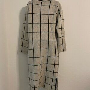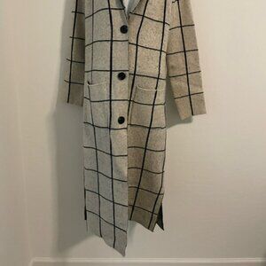 john + Jenn long sweater duster Ivory Black Windowpane Sz XS oversized! EUC