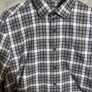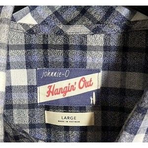 johnnie-O Shirt Hangin Out Large Blue Gray Plaid Flannel Long Sleeve Button EUC