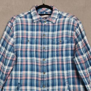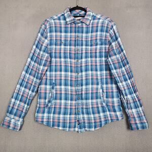 johnnie-O Surflannel Shirt Jacket Mens Medium Blue Pink Plaid Jason JMJK1920