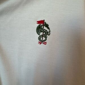 Classic white zip-up sweater by johnnie-O. Features a stylish quarter-zip design. Ideal for casual wear. Logo from Monterey Peninsula Country Club