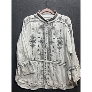 johnny Was Pete & Greta Embroidery Boho Button Up Shirt Natural Womens Size XL