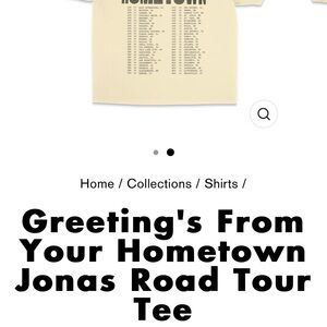 The product is a brand new 2XL tee featuring the Jonas Brothers' Greetings from Your Hometown tour in 2025. This shirt would be a must-have for any fan of the music group, showcasing their connection to their fans and their touring schedule. Whether worn at a concert or as casual everyday wear, this shirt is a great way to show off your love for the band.