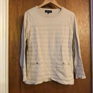 Jones ny ribbed cream sailor sweater. Gently used great material. Has small hole on back, can easily be sown. Price reflects. Cross posted.