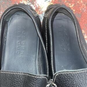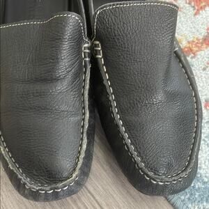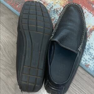 Step out in style with these sleek black leather men's loafers. Perfect for any occasion, these shoes offer both comfort and elegance.good condition
