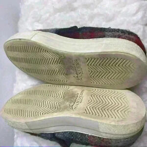 joshua Sanders Tweed Plaid Slip On Sneakers Red/Gray