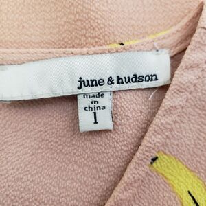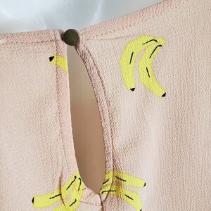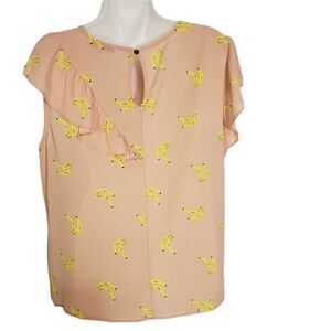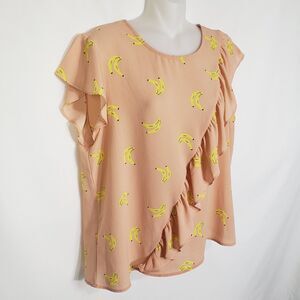 june & hudson Womens Top Size Large Banana Print Ruffles Keyhole Short Flutter