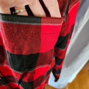 juniors size small button down plaid flannel shirt red and black. brand new no tags. front pocket excellent condition