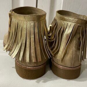 kATE SPADE ANKLE BOOTS FRINGE BOHO SUEDE GIPSY TAN/GOLD TRUFFLE SIZE 6.5