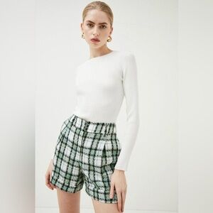 karen millen GEVSHORTS Check Tweed Shorts GREEN US 4