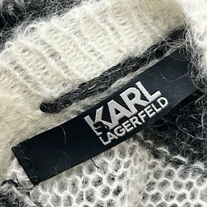 The dress is made of a soft and breathable knit fabric, with a striped pattern that adds a touch of preppy charm. The knee-length cut and open sheer design make it a great choice for the winter, fall, and spring seasons. Plus, the dress is made by the iconic Karl Lagerfeld brand, ensuring high-quality and designer appeal.