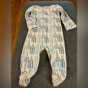 Adorable Kate Quinn blue rainbow footie pajamas. Size 6-9M. Has the mitten cuffs so baby won’t scratch themselves. Easy snap access on the legs for quick changes. No flaws observed offers welcomed.