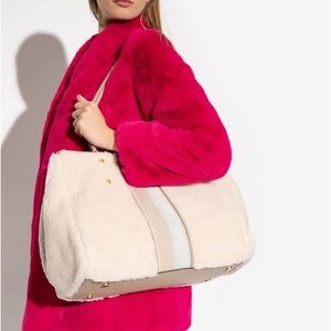 ♠️kate spade Everything Racing Stripe Faux Shearling Fur Large Tote, Cream, NWT