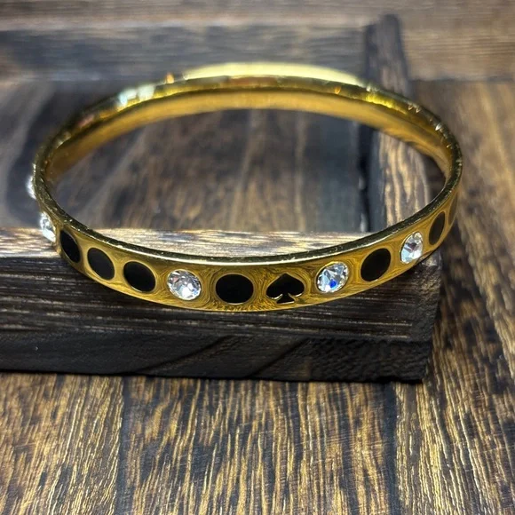 kate spade Gold Bangle with Black Enamel dots, ♠️ & Crystal Accents