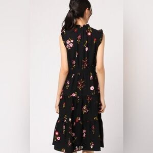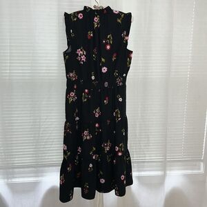 kate spade L Ma Cherie In Bloom Black Floral Smocked Waist Tiered A Line Dress
