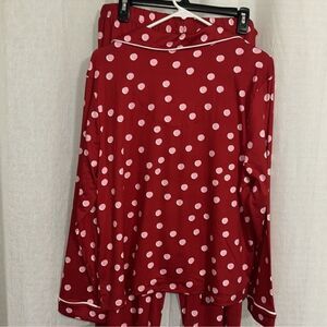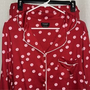 kate spade L-XL Red Pink Polka Notch Collar Long Sleeve Pajama Set