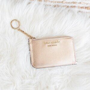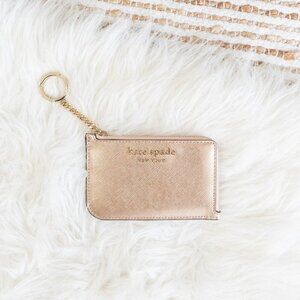 ♠️ kate spade ♠️ NWT! CAMERON ROSE GOLD L-ZIP CARD HOLDER WALLET KEYCHAIN COMBO