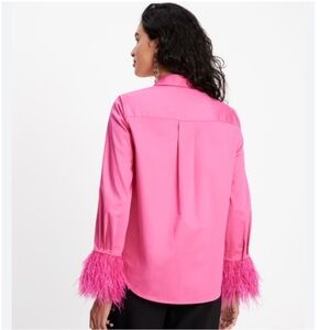 ♠️kate spade Plumage Feather Cuffs Shirt Top, Vivid Snapdragon Pink NWT