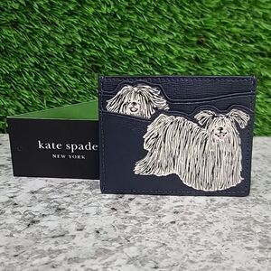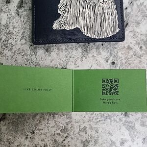 Stash your cards in our Shaggy cardholder. It's made from scratch-resistant Saffiano leather and embossed with an adorable sheep dog motif.