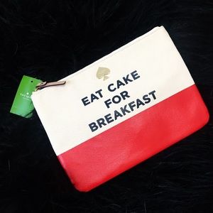 Super cute and super rare- new WITH tags EAT CAKE FOR BREAKFAST kate spade Gia pouch. 10.5”x7.5” with 24k gold hardware. Perfect for makeup and traveling!