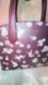 Chic satchel with floral pattern. Burgundy base with pink and yellow flowers. Perfect for stylish outings.
